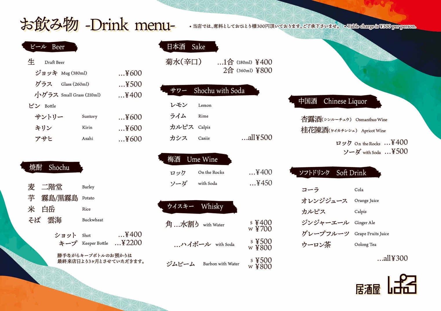 杏露酒・桂花陳酒ソフトドリンクall ¥300